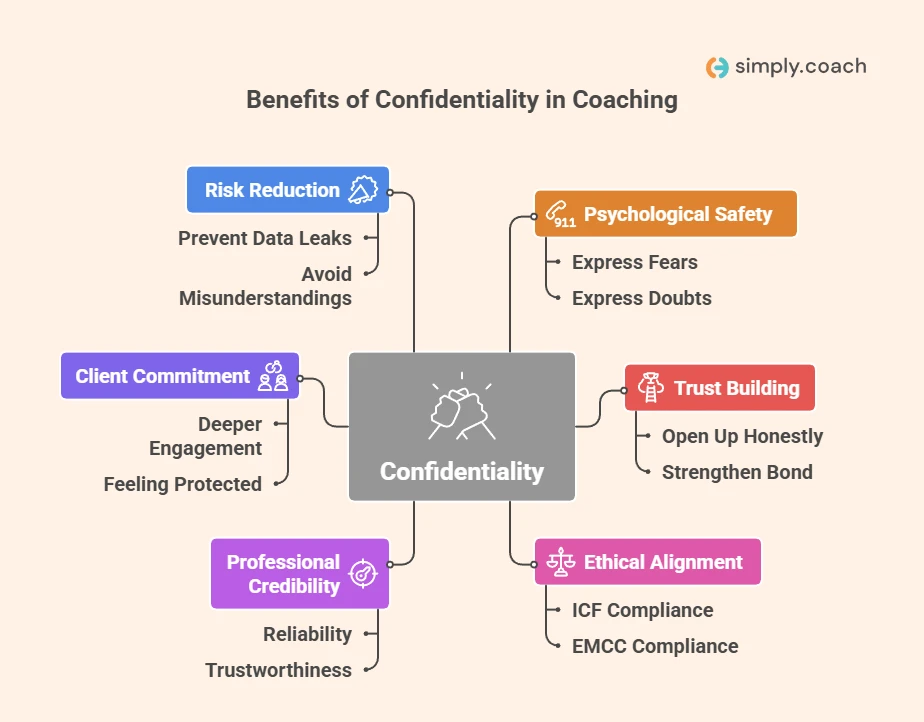 - Why confidentiality matters: Confidentiality builds trust, encourages honest sharing, and strengthens coaching outcomes.