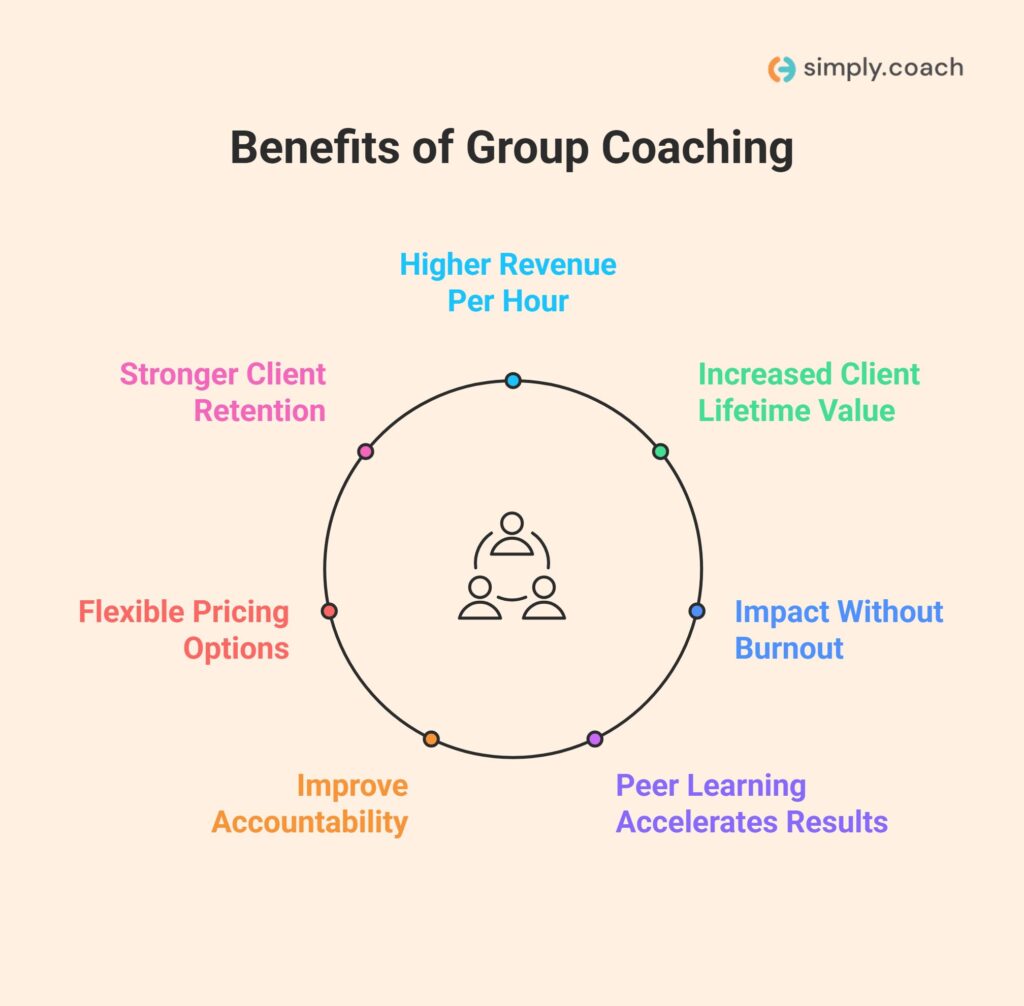 Group coaching creates a sustainable model that maximizes your earning potential while enhancing outcomes and satisfaction for your clients.