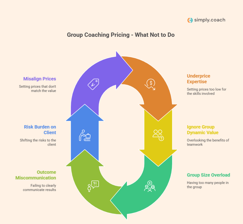 - Underpricing your expertise: Charging too low signals low value and attracts clients who are less committed to the work. Price your group coaching based on your experience, proven outcomes, and facilitation effort, not just session time.