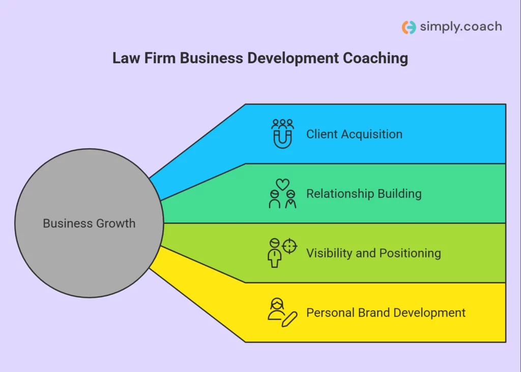 Business development coaching addresses this by helping lawyers build clear systems, develop repeatable habits, and move from occasional effort to ongoing execution.