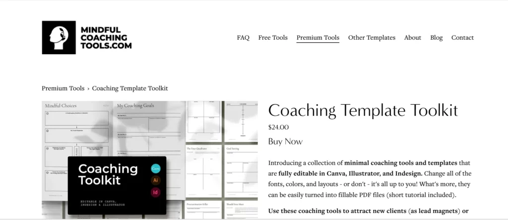 At $24, this toolkit provides customizable templates that cater to various coaching styles, giving you the flexibility to personalize your materials. It features: