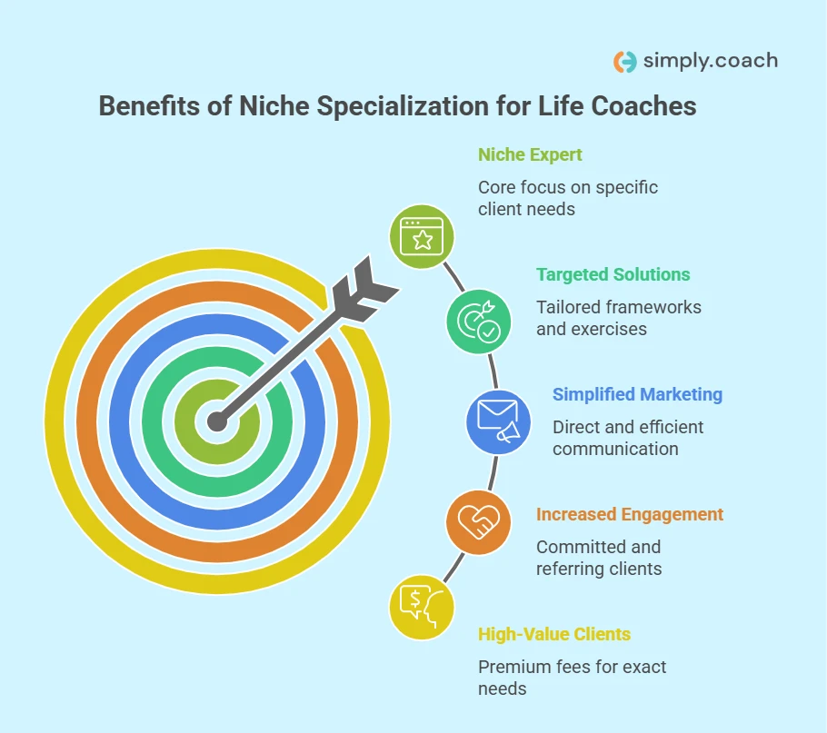 - Stand out as an expert: Specializing positions you as the go-to coach for a specific challenge. Clients trust coaches who focus on problems they experience daily, such as career transitions or confidence building.
