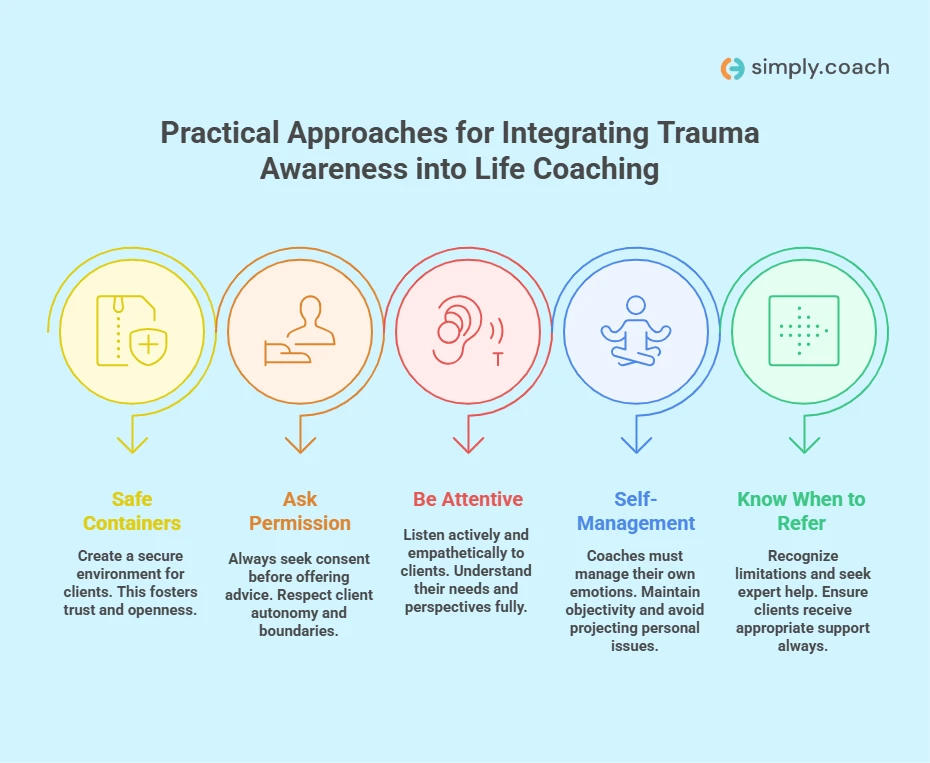 - By recognizing how trauma affects a client’s responses, coaches can create a supportive space. The goal should be to help clients heal and move forward, instead of deepening their challenges.