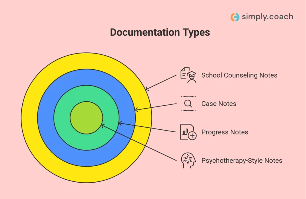 Understanding these distinctions helps counselors document sessions in ways that align with both ethical practice and school policies.