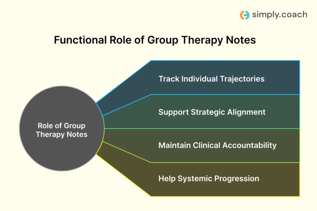 - Practice management platforms like Simply.Coach streamline documentation workflows. Built-in templates, secure client records, and centralized session tracking help therapists maintain organized group therapy notes.