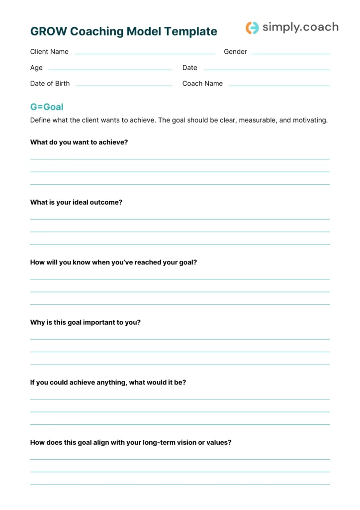 This GROW Model Template helps you guide clients step by step, from defining goals to committing to action.